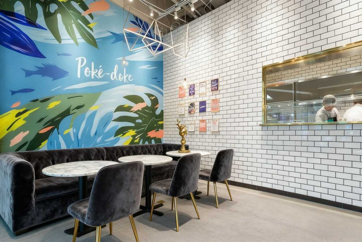 寶子們!今天帶你們云打卡這家剛開就火出圈的Poké-doke餐廳,這裝修簡直長在年輕人的審美點(diǎn)上!一進(jìn)門就被那片蔚藍(lán)色海洋壁畫征服了——游動的熱帶魚和搖曳的棕櫚葉直接把海邊度假感拉滿,白色磚墻上的彩色掛毯更是點(diǎn)睛之筆,這種碰撞絕了!