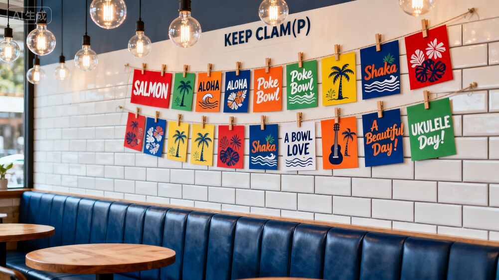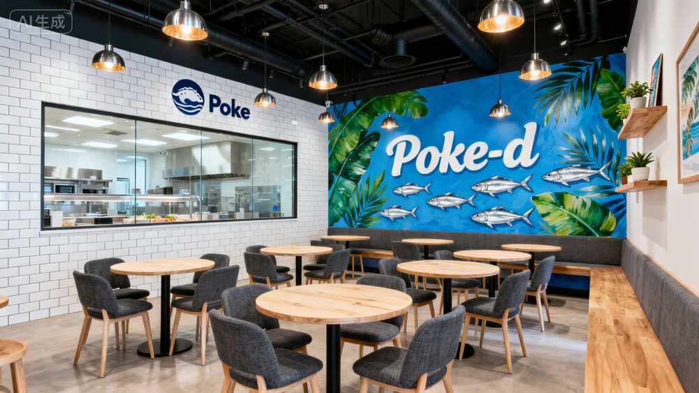 這家Poké-doke餐廳軟裝設(shè)計把海邊度假風玩明白了!藍白配色+藤編元素,隨手一拍就是ins大片