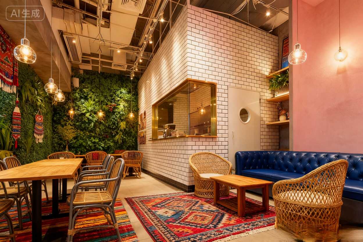 拿捏死了!這家餐廳軟裝設(shè)計的波西米亞混搭風,水泥墻+綠植居然這么絕!