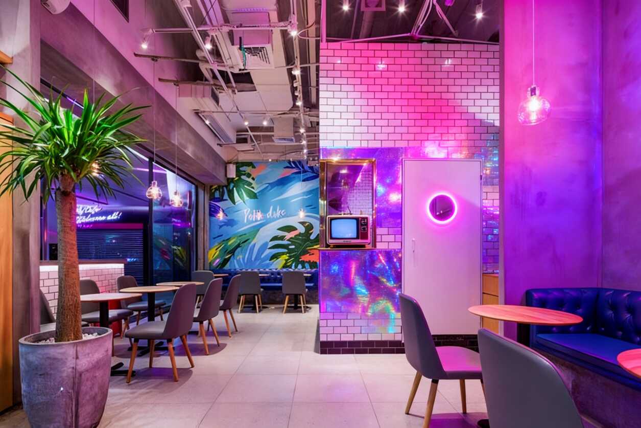 這家"LUCKY"餐廳軟裝設(shè)計太上頭!粉紫燈光+熱帶雨林壁畫,隨手一拍都是網(wǎng)紅打卡照