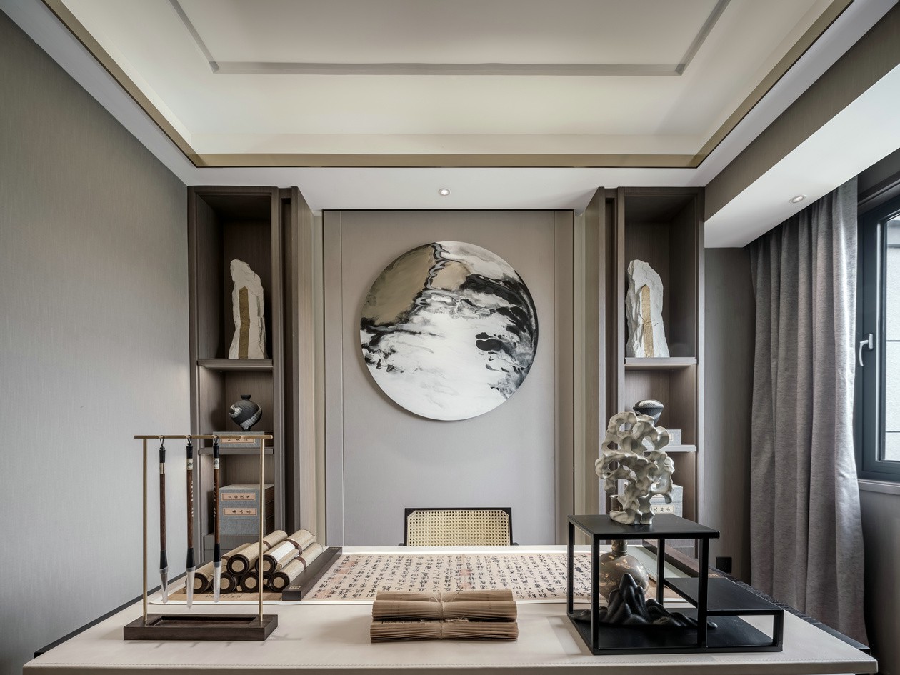 新中式軟裝風(fēng)格的家居選材以自然質(zhì)樸的木質(zhì)為主,并融入大理石、皮質(zhì)、金屬等現(xiàn)代材質(zhì),讓新中式煥發(fā)出時(shí)尚低奢的都市風(fēng)采。