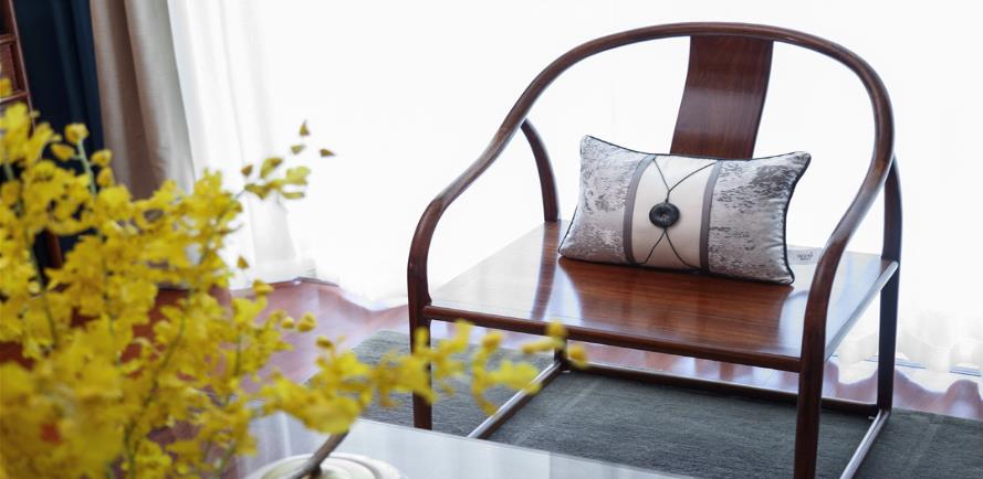 穿過走廊,在優(yōu)雅的客廳里,筆墨清幽的山水畫,幾張舒適的紅木桌子和椅子以及柔軟的云紋地毯,就構(gòu)成了這個(gè)素雅舒適的空間。