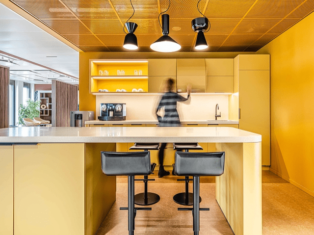 茶水吧的實(shí)用性也很重要。員工需求不僅僅是享受食品和飲料,同時(shí)也需要一個(gè)舒適的、有足夠空間和儲物的區(qū)域。設(shè)計(jì)師可以考慮為茶水吧提供充足的存儲柜,以便于員工放置私人物品和儲藏杯子等物品,避免茶水吧有混亂的感覺。