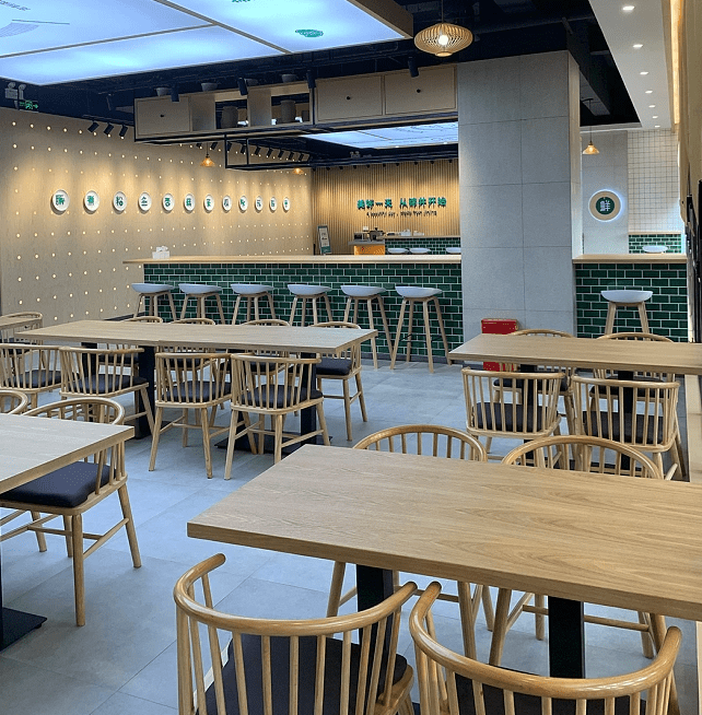 家具材料的選擇可以根據(jù)餐廳的整體風格和氛圍來進行選擇。常見的家具材料有實木、人造板、金屬等。實木家具具有天然、環(huán)保的特點,但價格較高;人造板家具則價格較為實惠,但易受潮、易變形;金屬家具則可以增加餐廳的現(xiàn)代感和科技感,但易受氧化、易刮花。