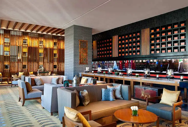 與之相反,度假酒店更多的考慮了場所的公共性,注重打造出一個(gè)大家庭的感覺,引導(dǎo)客戶平衡內(nèi)心,忘卻繁忙瑣碎,享受悠閑自在的度假時(shí)光。在空間布置和家具選擇上更多的盡可能與旅游區(qū)域文化遙相契合,在燈具、飾品、藝術(shù)品、家具、餐具和廚房等一系列設(shè)計(jì)中都充滿了大自然的光彩和度假酒店特有的興趣和情趣。