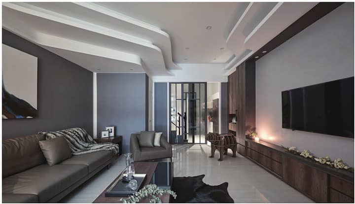 上圖中,室內(nèi)吊頂也是線條的一種形式。在這個室內(nèi)空間中,天花板的設(shè)計突破了以往直線的形式。根據(jù)室內(nèi)空間的布局,采用曲線的形式,給人以流動感和節(jié)奏感。而且天花板的弧形裝飾重復(fù),增強了空間頂部的層次感。此外,中央空調(diào)的出風(fēng)口可以隱藏在天花板之間,以保持空間的美觀。
