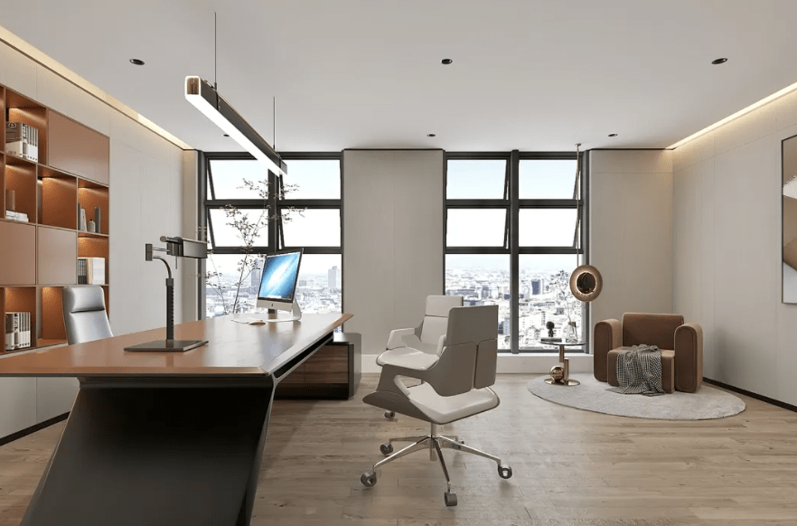 管理人員辦公室是比較高端的辦公環(huán)境,一般在整體空間劃分中占據(jù)較好的位置,包括朝向、風景、私密性等等。管理處的空間形象在整個方案設(shè)計中起著畫龍點睛的作用。它不僅向客戶展示了企業(yè)的形象和實力,也顯示了管理者或老板的素質(zhì)。不僅形象是外在的,形象也是內(nèi)在的,從而向員工傳達一些必要的潛意識信息。同時,對于管理者自身來說,要提供更加舒適便捷的辦公環(huán)境,滿足自身的工作需求。