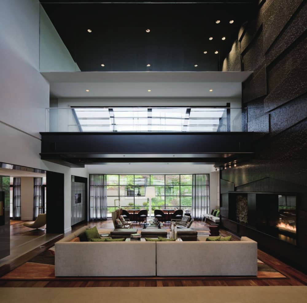 宏偉大廳的中心區(qū)域有壁爐地板和獨(dú)特的玻璃雕塑。不同的區(qū)域從建筑的中心向外延伸,以滿足個(gè)人和團(tuán)體的工作和休閑需求。玻璃晶瑩剔透,從其他角度詮釋了石頭的沉穩(wěn),打造出一面有層次感的反光墻。所有的材料都忠實(shí)地展現(xiàn)了它們的屬性,鋼、玻璃、木材相得益彰,重新定義了現(xiàn)代主義的傳統(tǒng)。
