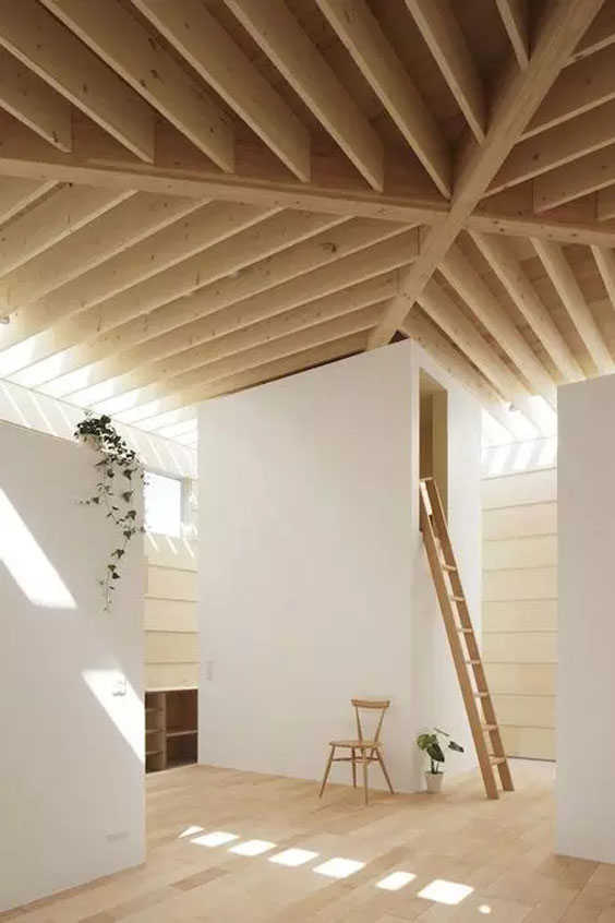 將民宿屋頂?shù)哪緲?gòu)裸露出來(lái),將工業(yè)風(fēng)與現(xiàn)代極簡(jiǎn)風(fēng)結(jié)合,讓設(shè)計(jì)顯得更加的大膽與新穎。