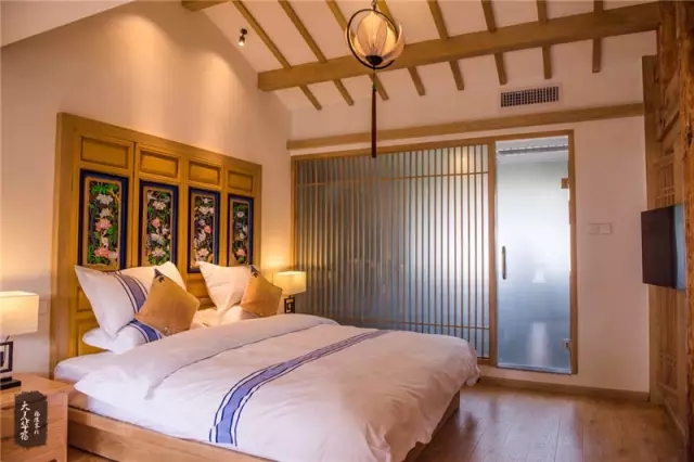 在妙緣客棧的房間中,我們可以看到設(shè)計師對于家具擺放,色彩搭配的精心設(shè)計。房間中有開放式浴缸,榻榻米,古風(fēng)小毯子,素雅沙發(fā),傳統(tǒng)衣柜等等,不僅讓游客有家的溫馨,更有一種被賓至如歸的愉悅感。