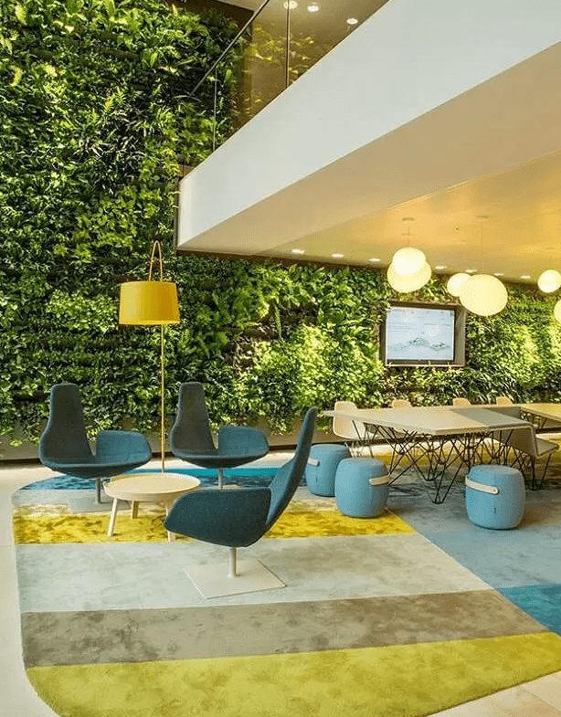 再次,注重室內(nèi)植物的布置。室內(nèi)植物不僅可以增加辦公空間的美感,還可以改善空氣質(zhì)量。植物通過光合作用吸收二氧化碳,并釋放出氧氣,從而提高室內(nèi)空氣的質(zhì)量。在辦公空間的設(shè)計中,可以設(shè)置一些綠植,如盆栽、花卉等,使員工能夠感受到大自然的氣息。此外,還可以設(shè)置一些垂直綠化墻,將室內(nèi)空間與室外空間連接起來,為員工提供一個舒適和健康的工作環(huán)境。