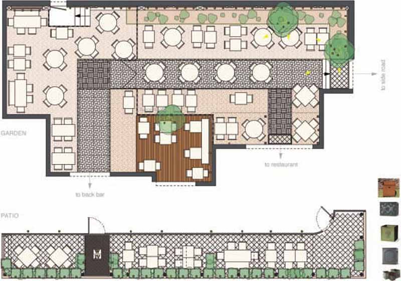 寬敞的后花園座位區(qū)一直是威廉四世酒吧餐廳的主要看點(diǎn),所以餐廳設(shè)計(jì)公司在這里增加了一些法式家具,金屬餐桌和座位框架配合色調(diào)憂傷的彩色座椅非常受歡迎。特別值得說明的是,酒吧餐廳的正面被茂密的灌木叢環(huán)繞,給人一種寧靜的感覺。