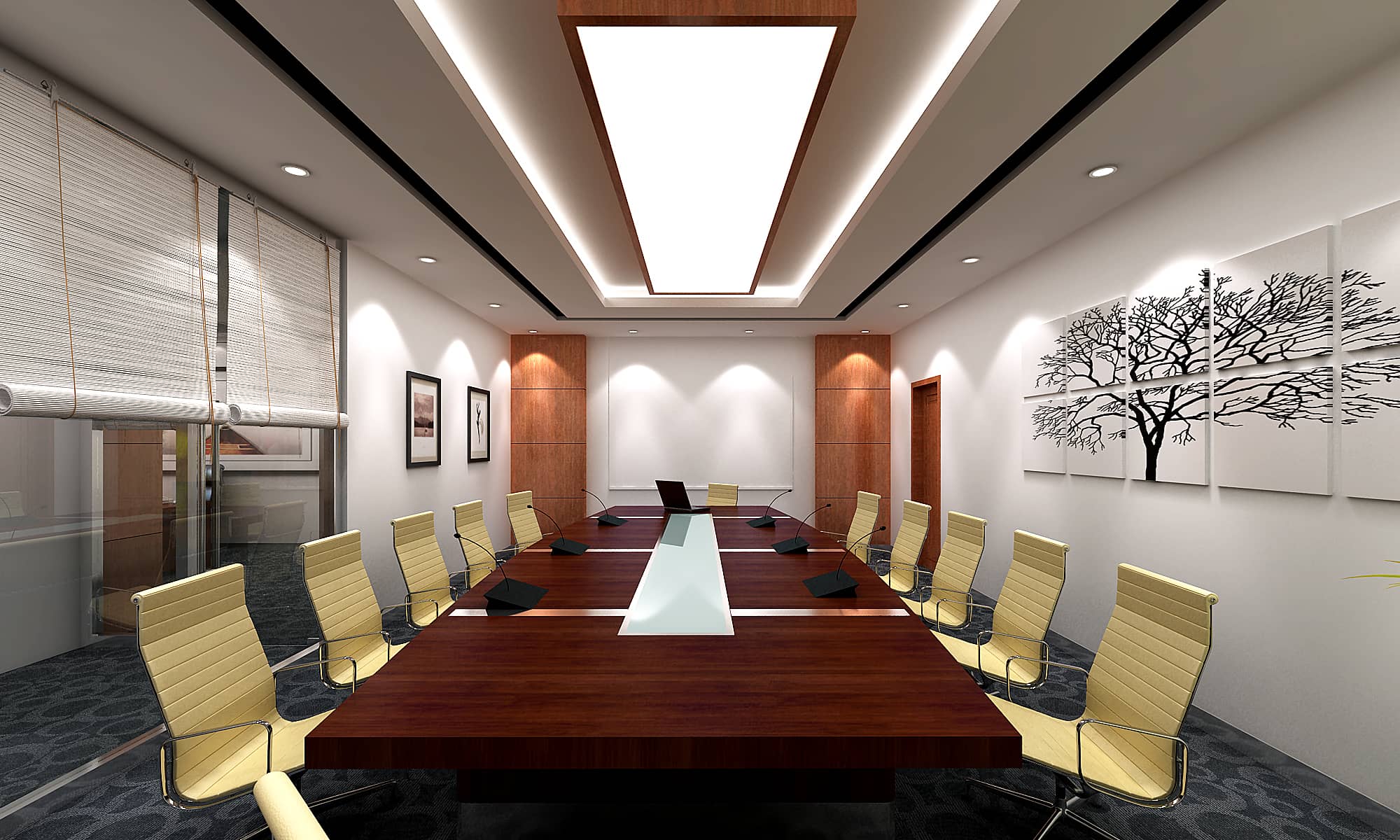 在決定了照明方式和數(shù)量之后,首先要做的就是設(shè)置照明的焦點(diǎn)。通常是辦公桌、會(huì)議桌、談話(huà)區(qū)、走道等。都是需要采光比較好的地方,所以主照明不要離他們太遠(yuǎn)。接下來(lái),我們應(yīng)該考慮天花板上的照明的美感。比如一個(gè)完整的吊頂,如果照明只是實(shí)用,雜亂無(wú)章的分布,就會(huì)破壞它的美觀。所以吸頂燈的布置也要遵循實(shí)用與美觀相結(jié)合的原則。我們經(jīng)常會(huì)遇到天花板平面上不同位置照度不同的問(wèn)題。簡(jiǎn)單的解決辦法就是加強(qiáng)整個(gè)空間的光照,讓整個(gè)地方都明亮起來(lái)。但這只是勉強(qiáng)的辦法,因?yàn)楣獠粌H起到照明的作用,還是塑造環(huán)境氛圍的重要手段。如果到處都是明亮的,很容易失去環(huán)境的情調(diào),這時(shí)候比較好的辦法就是根據(jù)燈光分布重新設(shè)計(jì)吊頂。比如將一個(gè)吊頂分割成不同的形狀,就可以將采光的不均勻分布與不同形式的吊頂造型有機(jī)結(jié)合,使之成為多樣的吊頂造型和主次分明的燈光效果。
