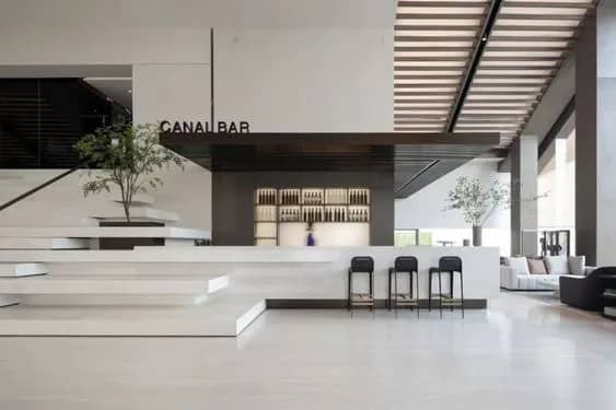 大堂作為主要的流通場所,是酒店交通的樞紐,可以為客人提供接待、等候、休息、交流等功能空間。從酒店管理的角度來看,大堂是一個控制中心,工作人員可以從這里觀察和控制酒店的基本事務。